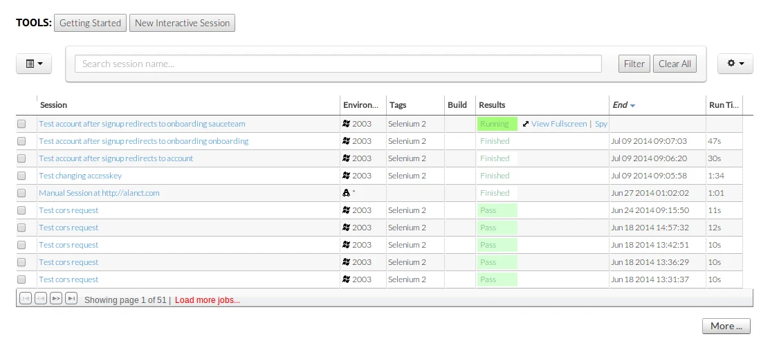 Sauce Labs software developer Alan Christopher Thomas and his team have been hard at work updating our stack. He shared with us some insight into their dev process, so we thought we'd show off what he's done. Read his post below. Over the past few months, the Sauce Labs web team has fixed its crosshairs on several bits of our stack that needed to be refreshed. One of those bits is the list of jobs all customers see when they first log into their account. It looks like this:
