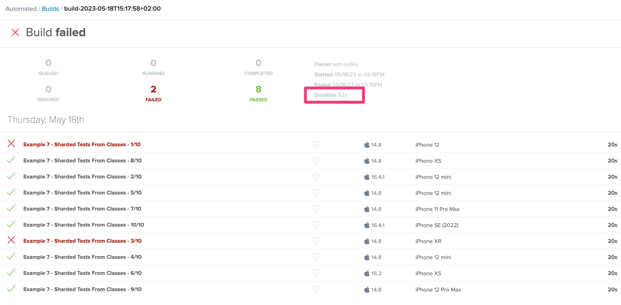 Sharding optimizes the utilization of available test execution environments on the devices that it’s supported by. By running multiple shards concurrently, your organization can make the most of its test infrastructure, increasing the efficiency and productivity of your testing team.