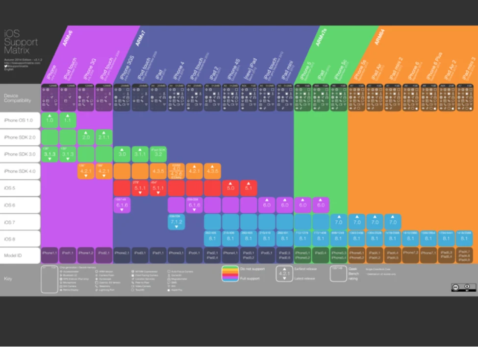 When an application needs to run on multiple OS, devices, and varied screen sizes, QA teams are faced with the challenge of ensuring the application functions in every environment. The below graphic of the iOS support matrix alone shows the complexity with a single series of devices and OS type. [caption id="attachment_12588" align="aligncenter" width="587"]