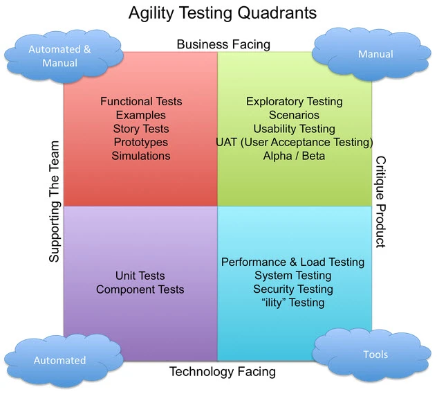 Everyone owns quality! Yes, you too, engineers... Rather than creating a team that thinks QA alone is responsible for the quality of a product, what if everyone had skin in the game? Of course, part of that is understanding each other’s roles and what the value of testing is. A good tester will work with your team to decide what types of testing need to occur, who can take care of them, and free up those people to take on testing activities. One way to understand this is to take a look at the Agile Testing Quadrant.