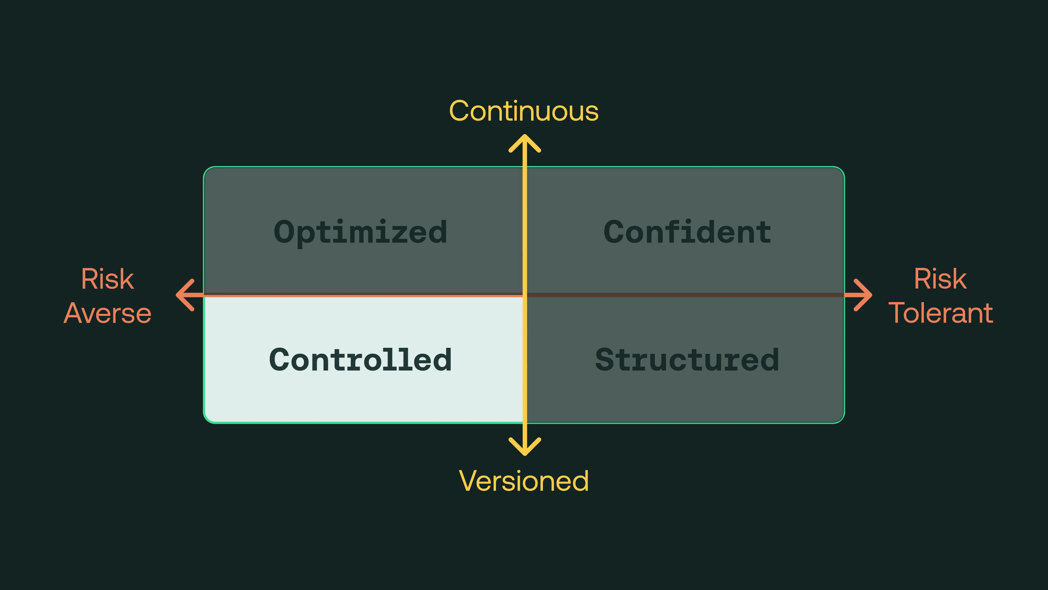 Organizations in this quadrant are focused on ensuring code coverage in their testing while leveraging continuous delivery. Most commonly found among teams focused on digital transformation, they may struggle with large automation suites and high test overhead, limiting their ability to progress toward a more agile model. Teams that prioritize extensive testing due to compliance and security concerns fall within this quadrant.